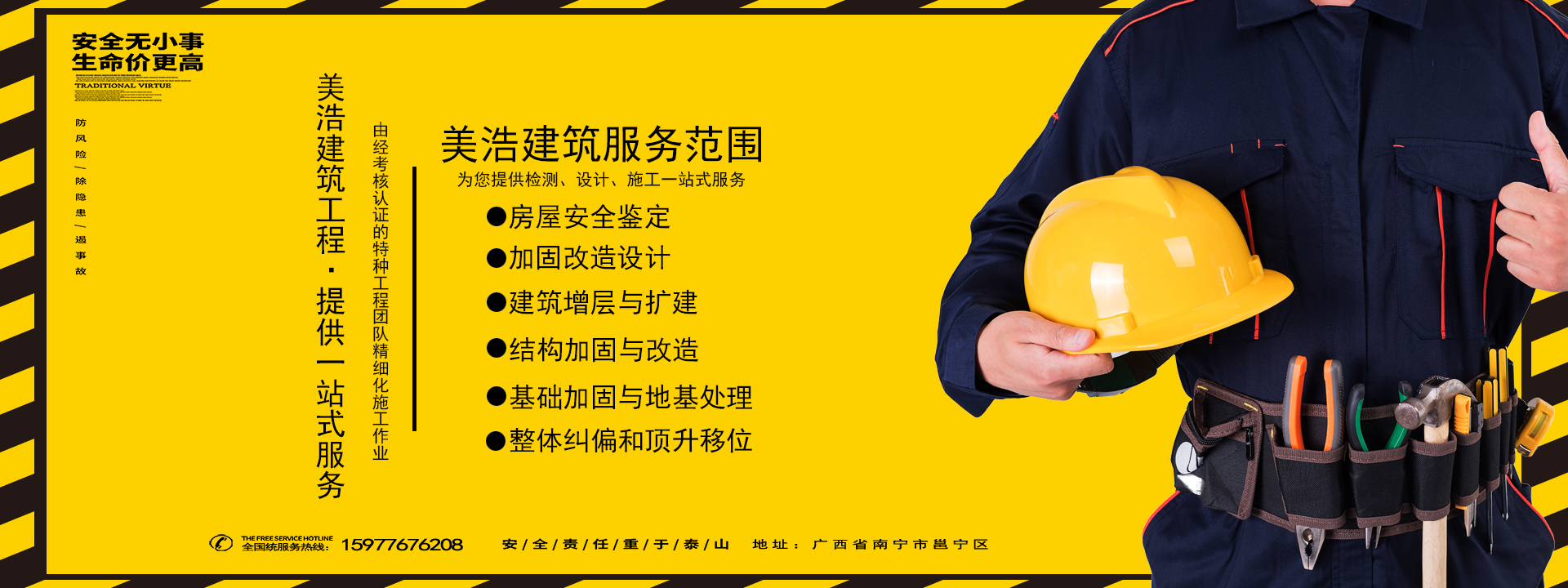 • 美浩建筑,專注加固多年經驗,擁有多項加固技術專利,擁有多項施工資質證書,一直堅持“專業 誠信 高效”的經營理念。